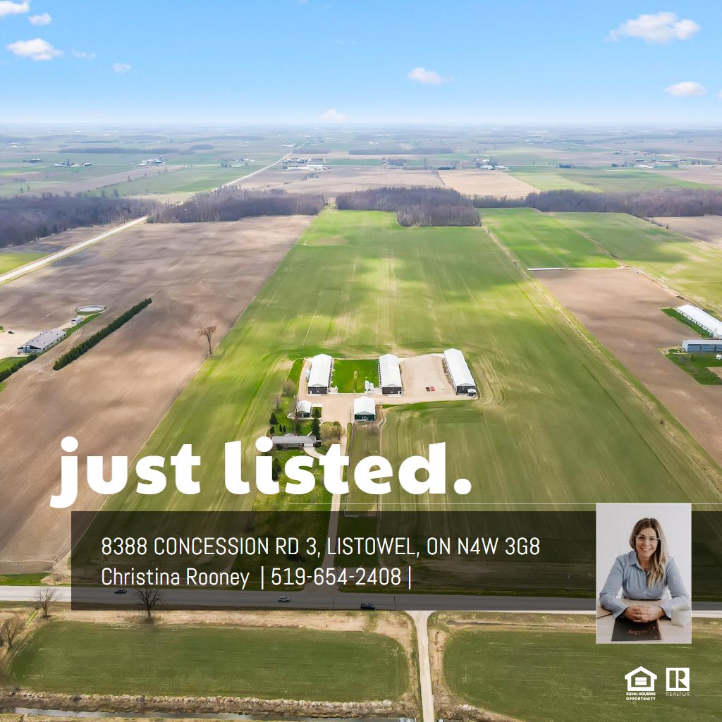 100 Acre Operational Poultry Farm located on a paved road 15 minutes from Listowel, 20 minutes from Elmira, and 30 minutes from Waterloo. Well maintained 3 + 1 bedroom 3 bathroom bungalow with a fully finished basement, 1.5 car attached garage, new metal roof, and overlooking pastures and green space. The property features 78 acres of highly productive systematically tiled farm land, 15 acres of forest, and 2 heated work shop with 3 roll up bay doors. There are 3-2 level poultry barns that were completely renovated in 2016 compete with new bathrooms in each and a large gravel truck yard with catch basins was added. Barn 1 (42 x 212) is a breeder/layer barn with a Jansen free range nesting system, barn 2 (42 x 210) is a broiler barn with new broiler equipment installed in 2024, and barn 3 (42 x 256), has a ventilation and lighting system and is ready to go with the addition of new feeders and drinkers (currently not in production). The barns are serviced by their own well and septic systems, 600 amp underground hydro service (3 phase hookup is available at the road), Roger fibre optic internet, and a diesel backup generator. Don't miss this unique opportunity to make this property your own.